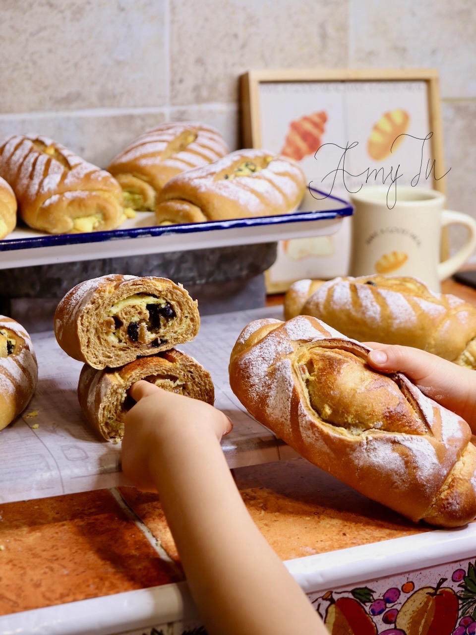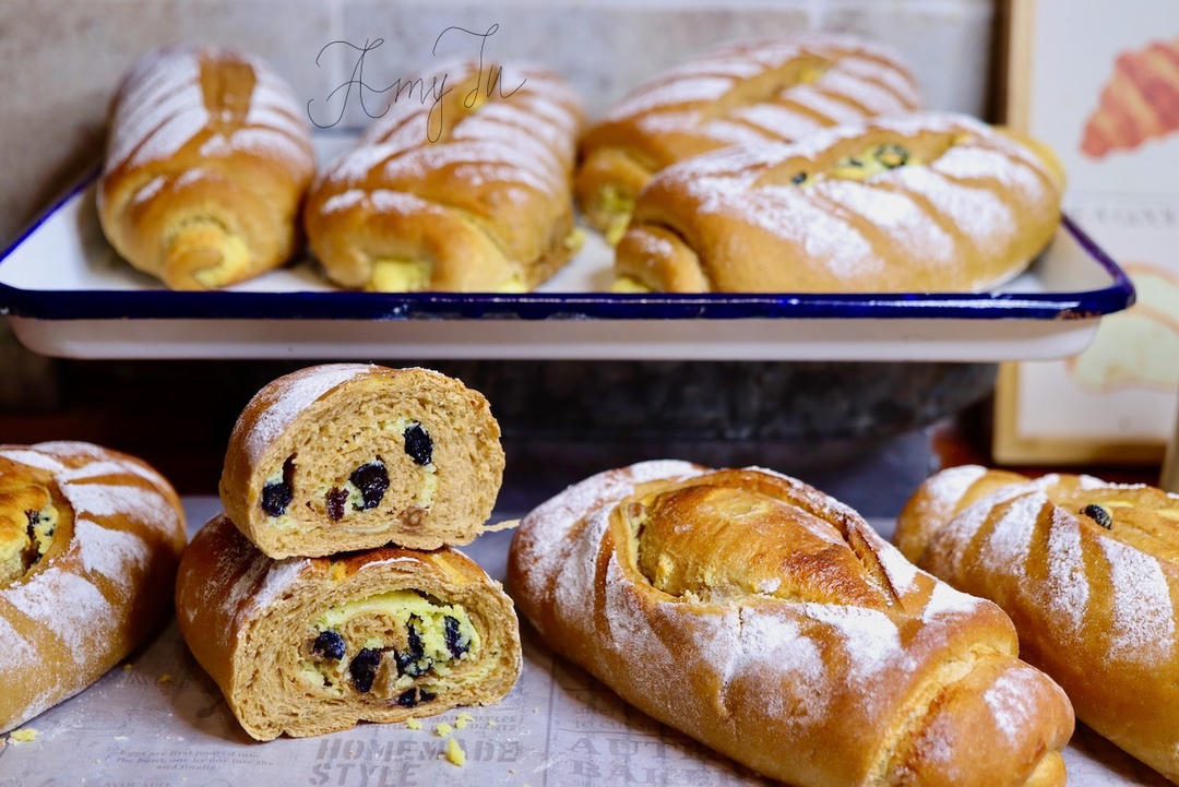 咖啡面包里满满奶酥馅哦~还有葡萄干