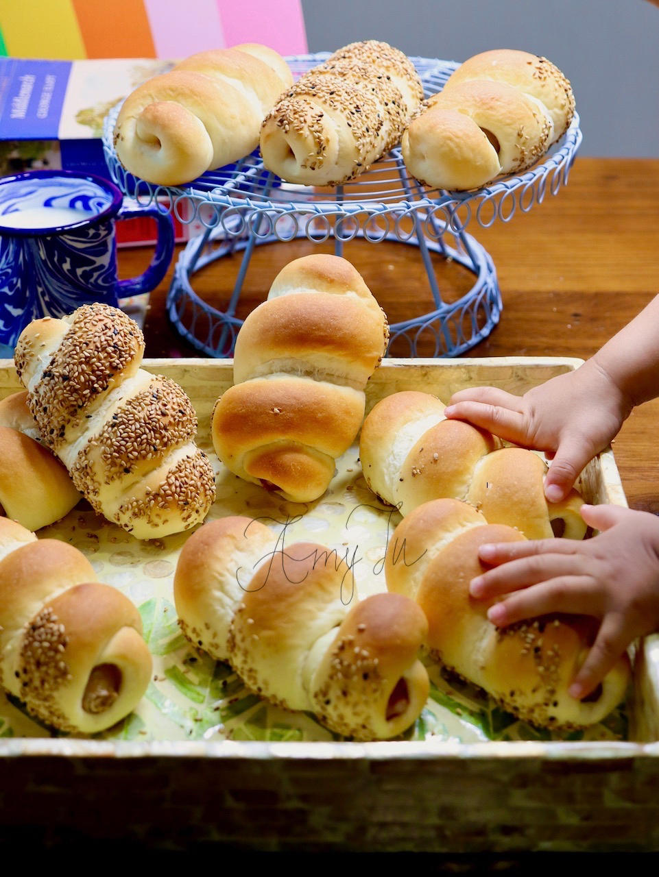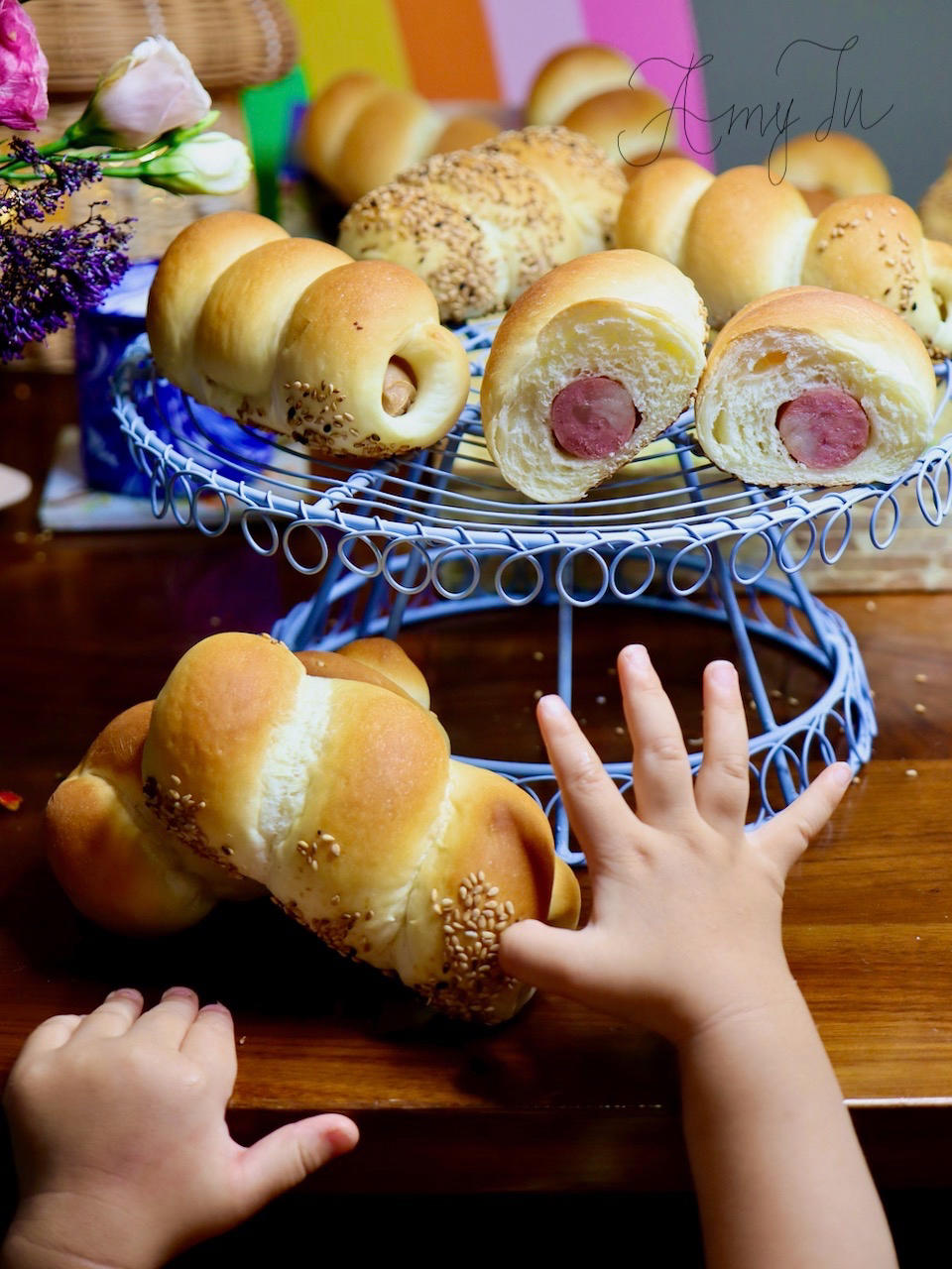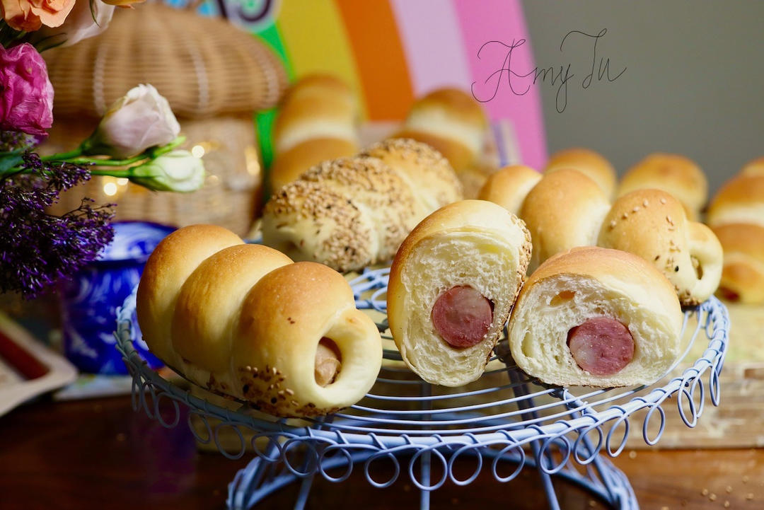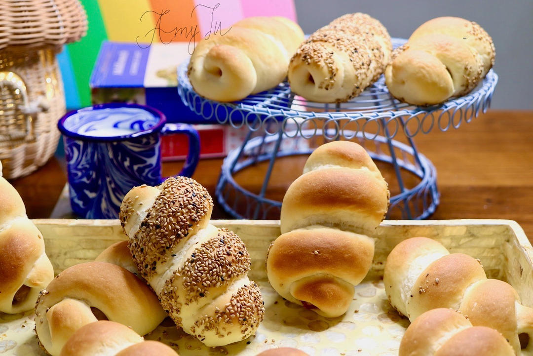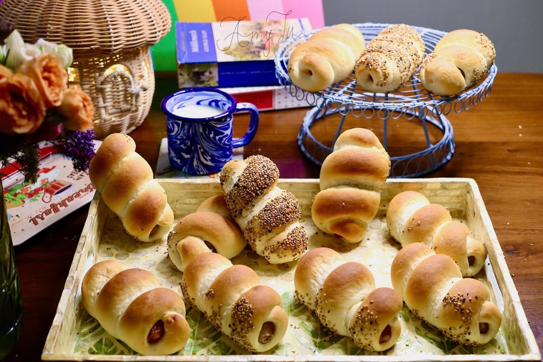 胖乎乎的芝麻热狗面包卷。配料简单,而且这个配方的面包胚不含鸡蛋...