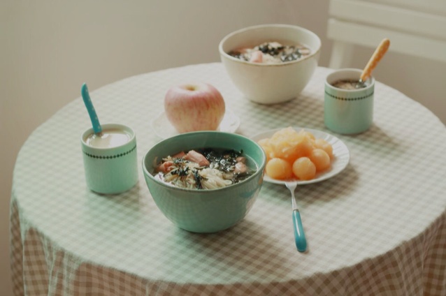 这是昨天早餐。邻居不爱喝芝麻核桃粉,又不爱吃南瓜,只好给他弄不一样的。焚蛋,辣末挑食!