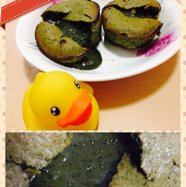 之抹茶熔岩小蛋糕 爆浆控制得不错达到了熔岩的效果 失败在于没有用烤碗改成了纸杯导致周边都焦了 卖相上扣了分 ...