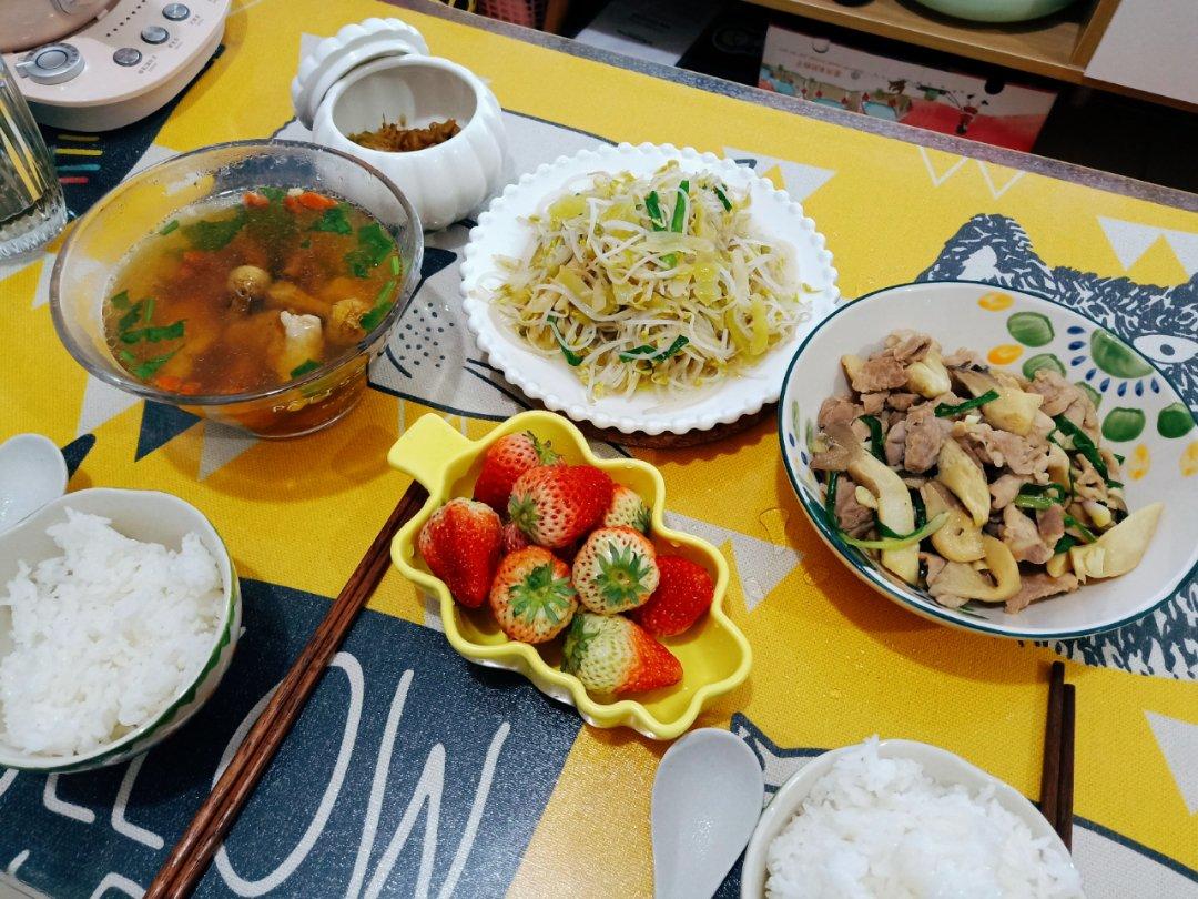 Huey's dinner 【鲜虾鲜贝青豆米面➕蘑菇炒肉片】
