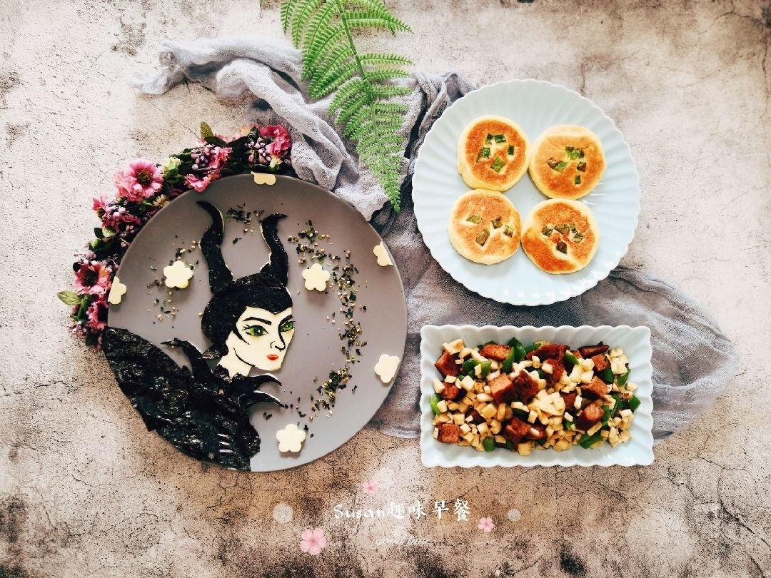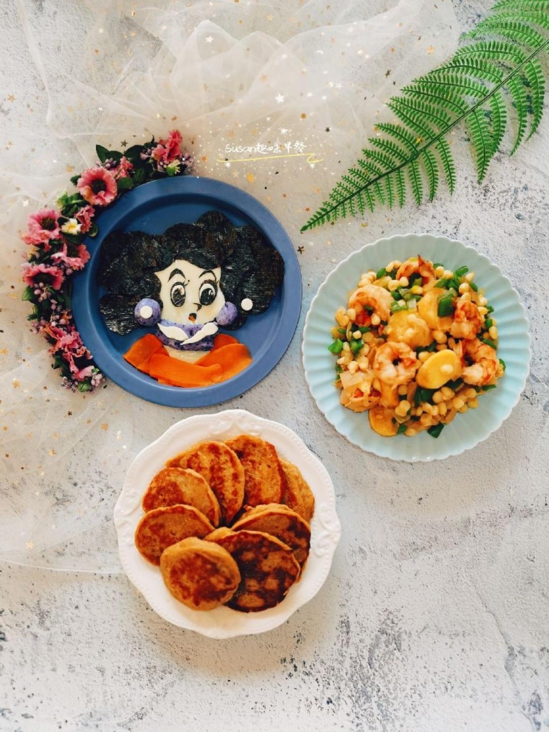 Susan趣味早餐第1442号,史迪奇蝶豆花全麦千层,口蘑胡萝卜炒鸡胸,牛奶。红薯夹心的全麦无糖千层,每次做小乖熊都欲罢...