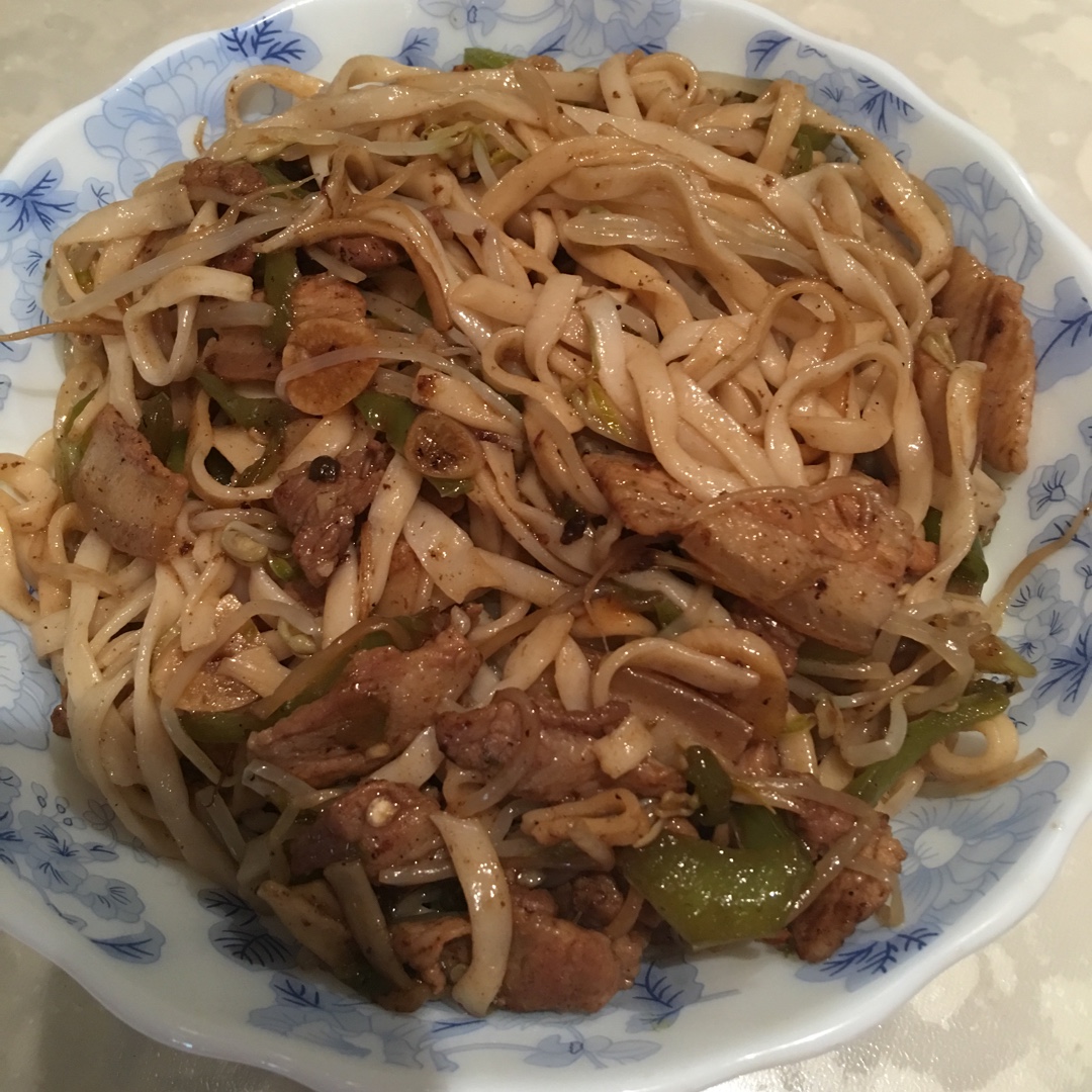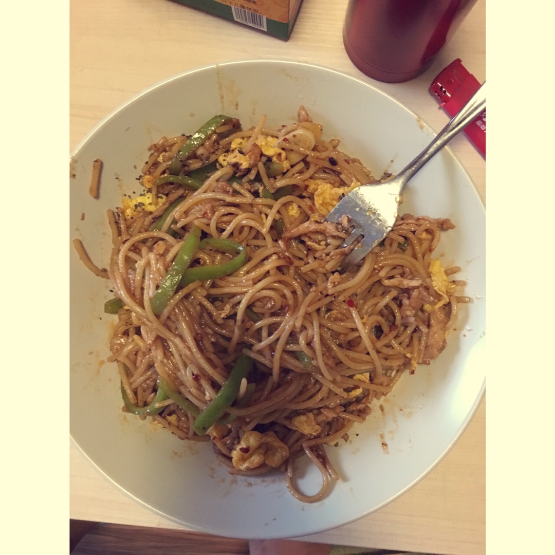 青椒鸡蛋肉丝炒面