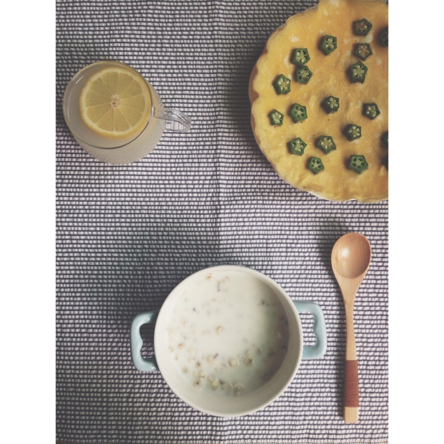 牛奶薏仁粥+秋葵摊蛋+柠檬薏米水