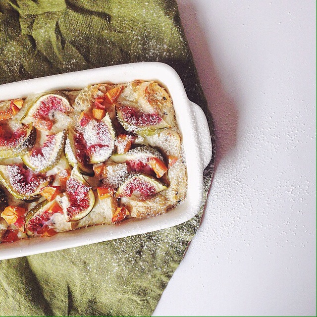 无花果吐司布丁,放了3个蛋白…