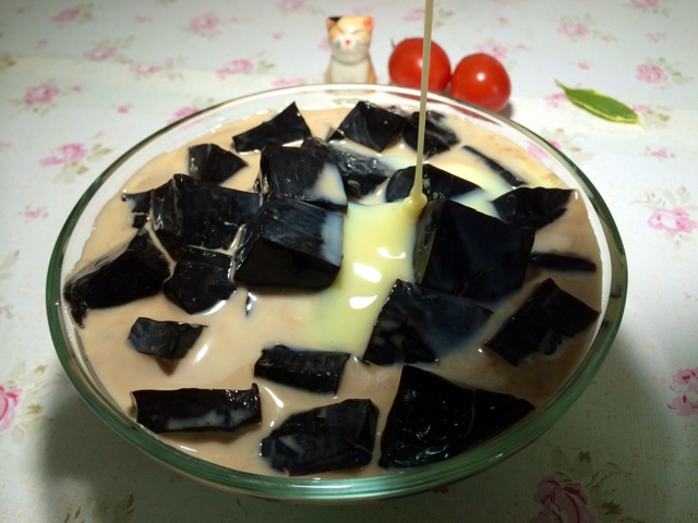 用了炼奶,搅拌了一下后就变成了奶茶色