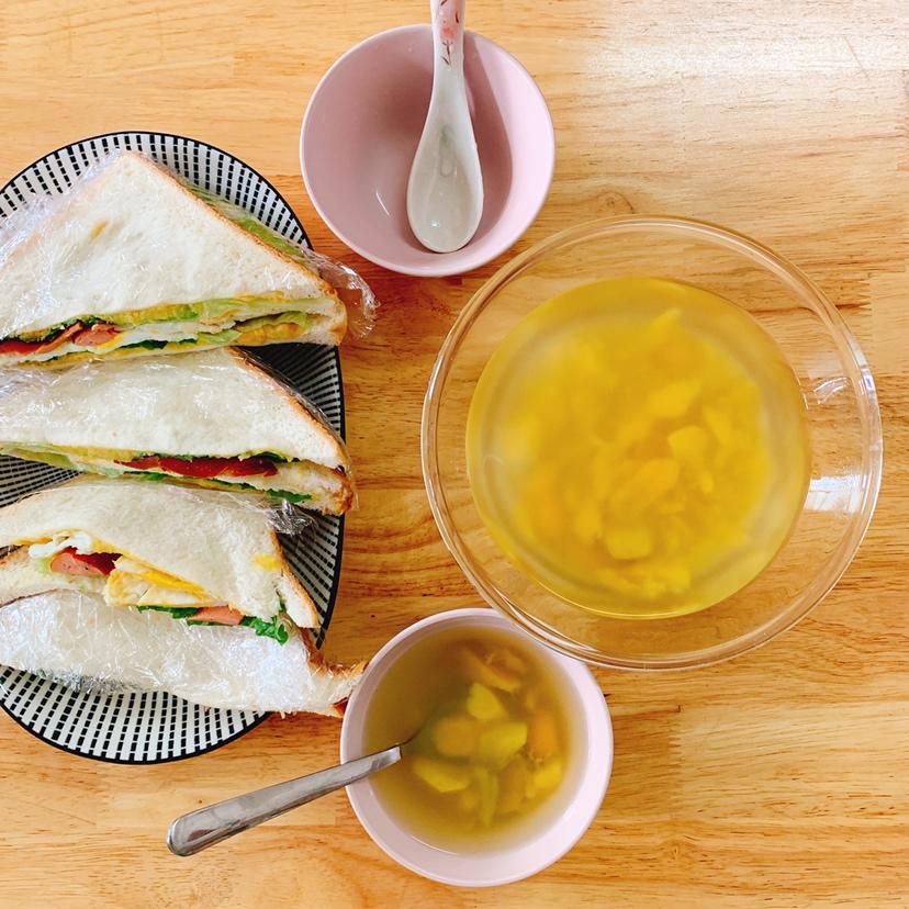 芝士火腿三文治 ~红萝卜淮山玉米糊,好香甜😋