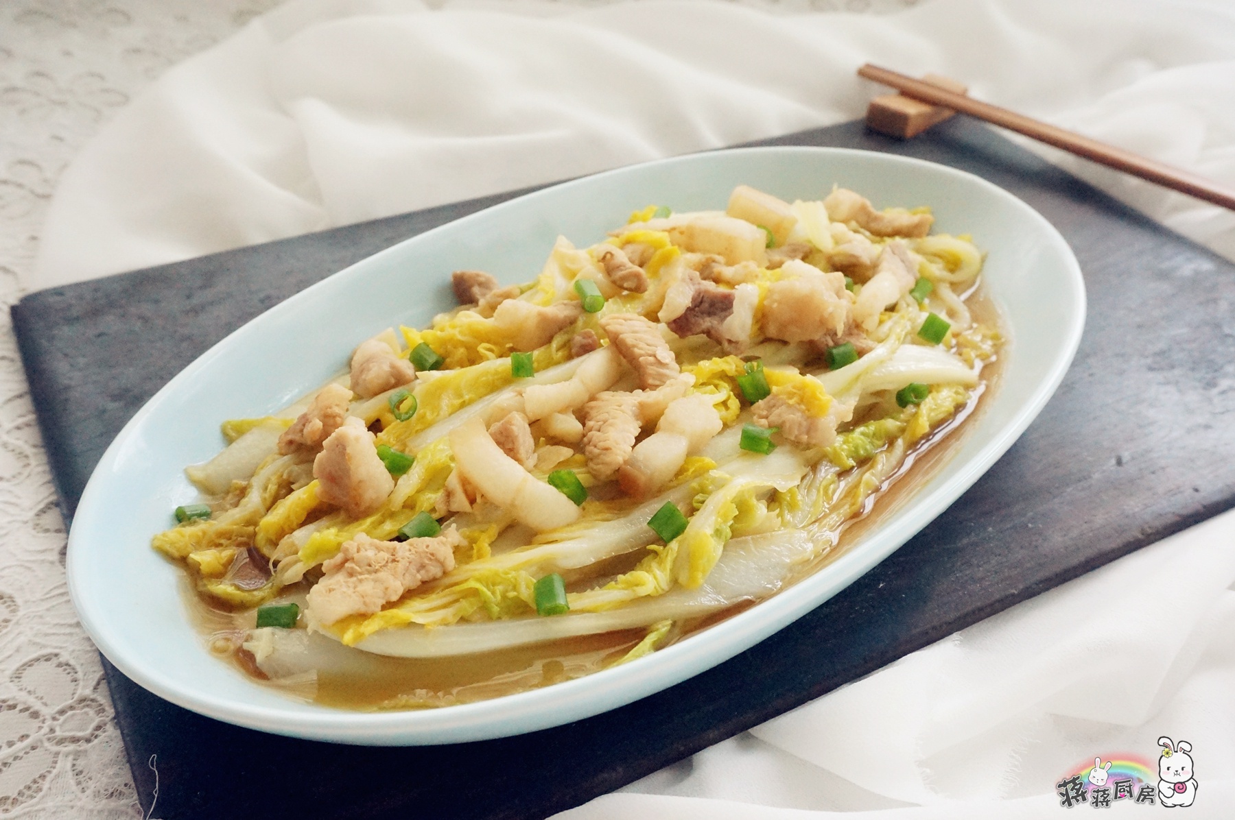 白菜类的要想好吃颠覆传统切竖条,侵入汤汁会更鲜美!