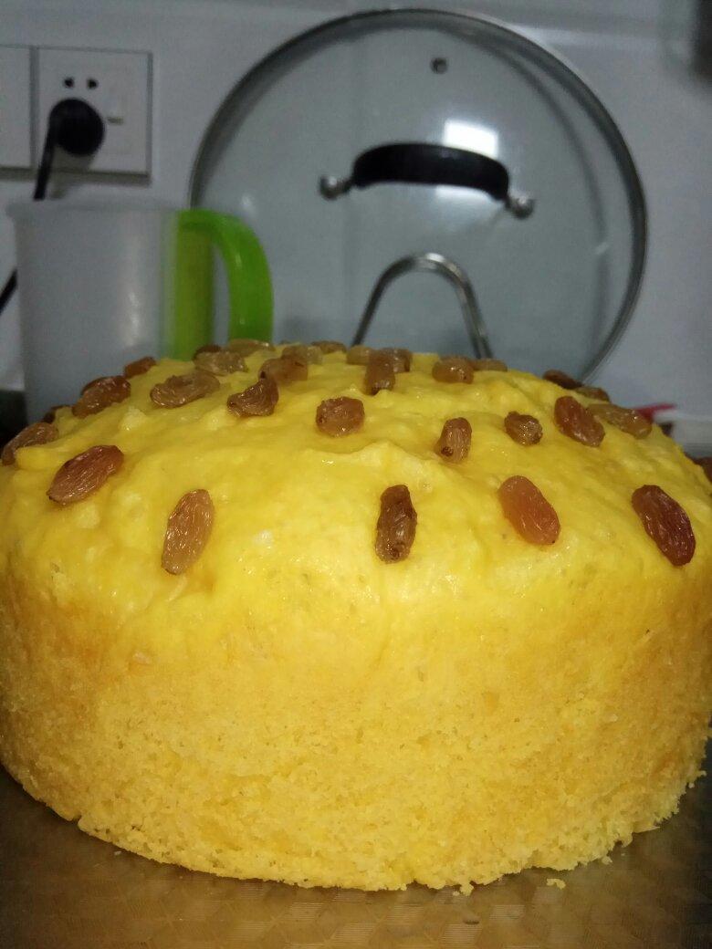 按发子2倍量做的,非常大一个,然后我中途开了几次盖子。表面有一小点塌,但是味道很好,没加泡打粉,我用的老式电饭煲蒸的,脱...
