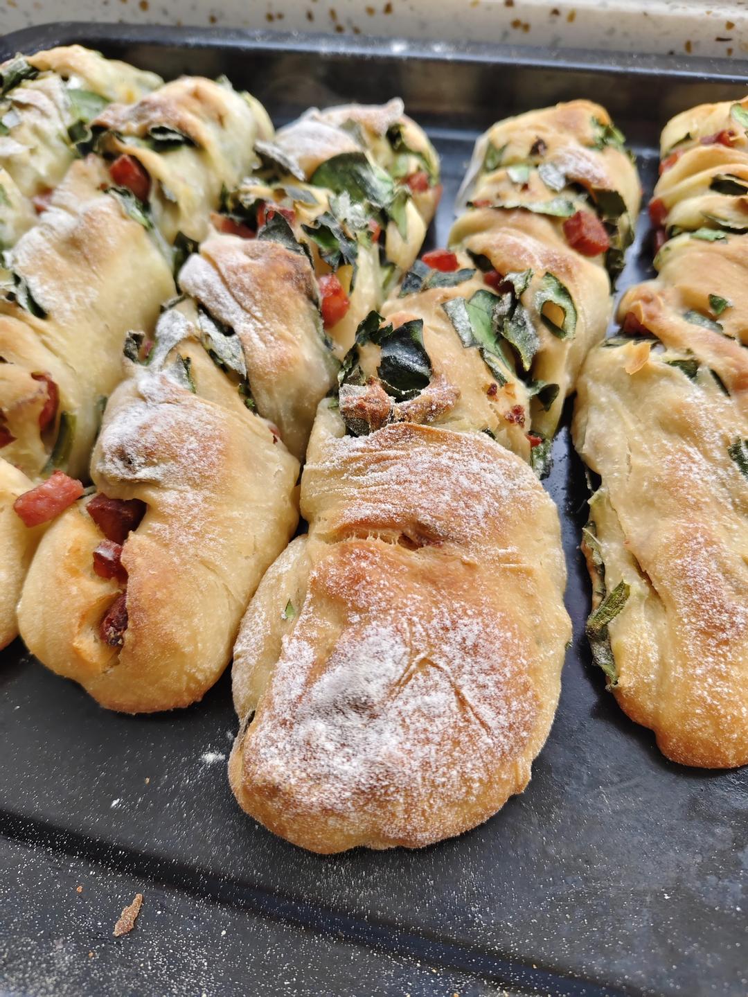 菠菜扭扭棒✌️500克面粉,75%的水量,我的烤箱温度偏高,160°,4...
