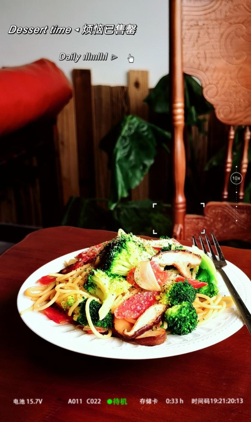 自己带的广味香肠和西兰花😎