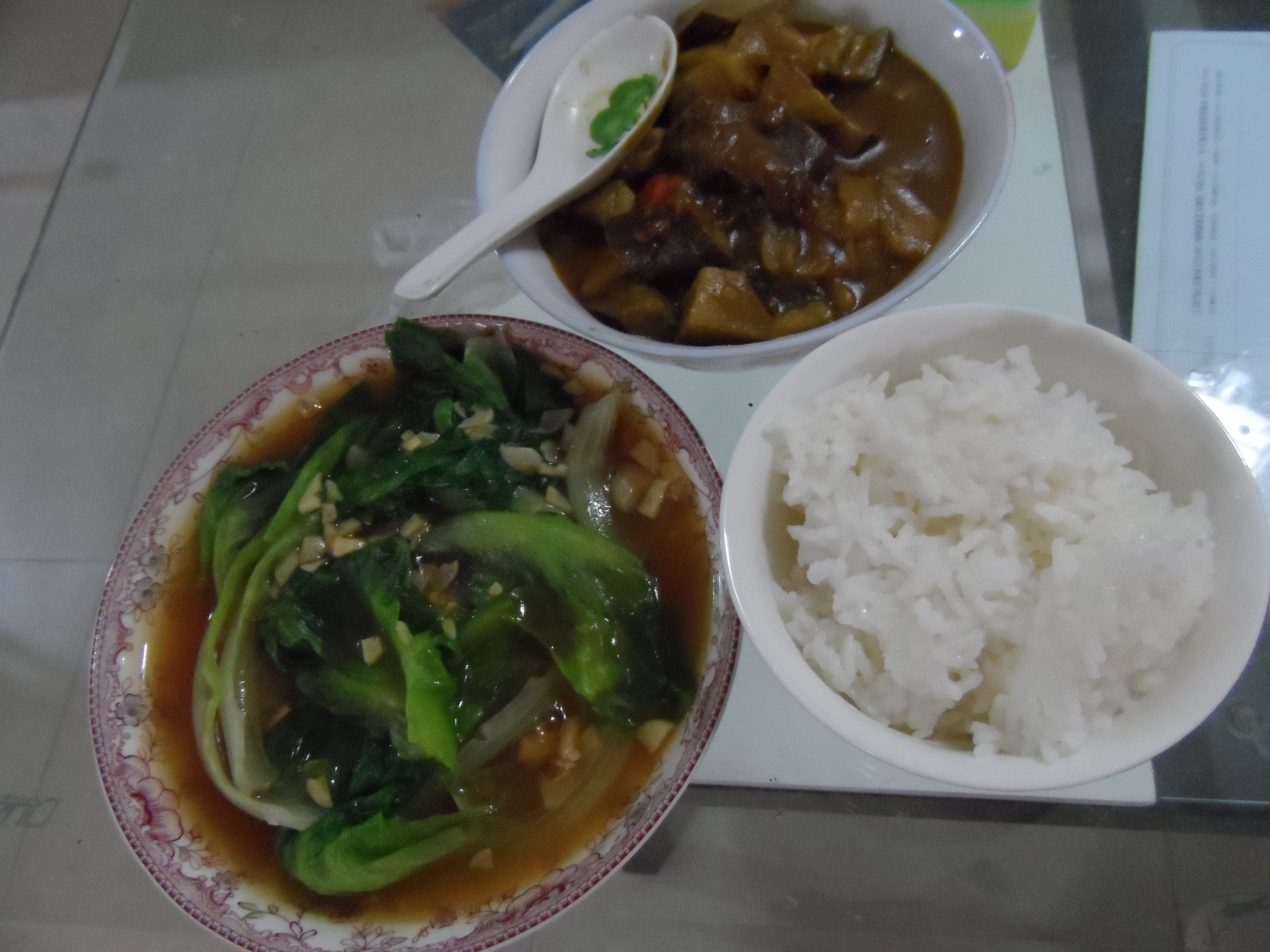 蚝油生菜和咖喱茄子
