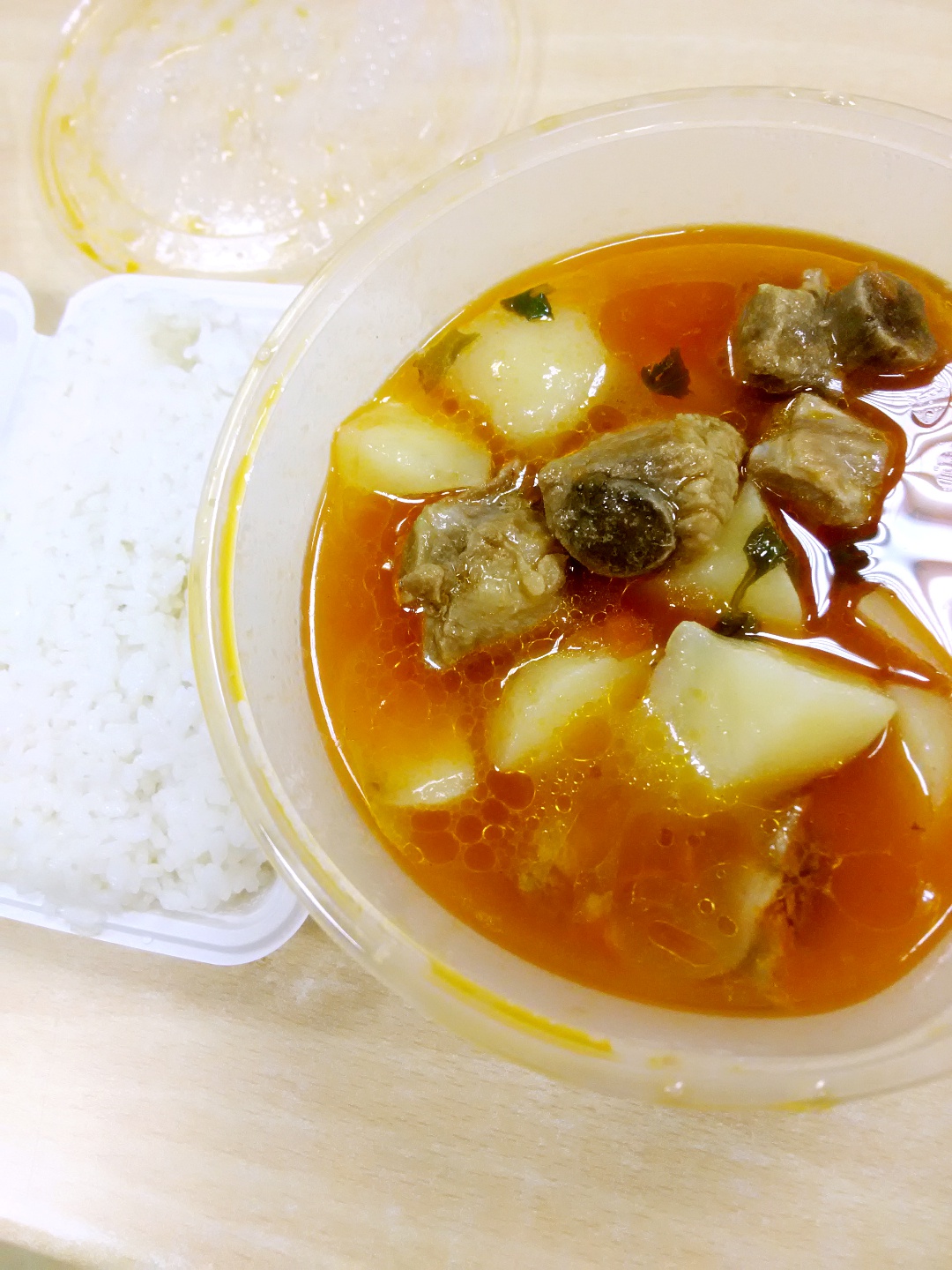 手术餐,西红柿土豆排骨乱炖。早晨七点到科里,晚上七点才从手术台下来。今天是实习之后的第三个手术日,被允许打结了...
