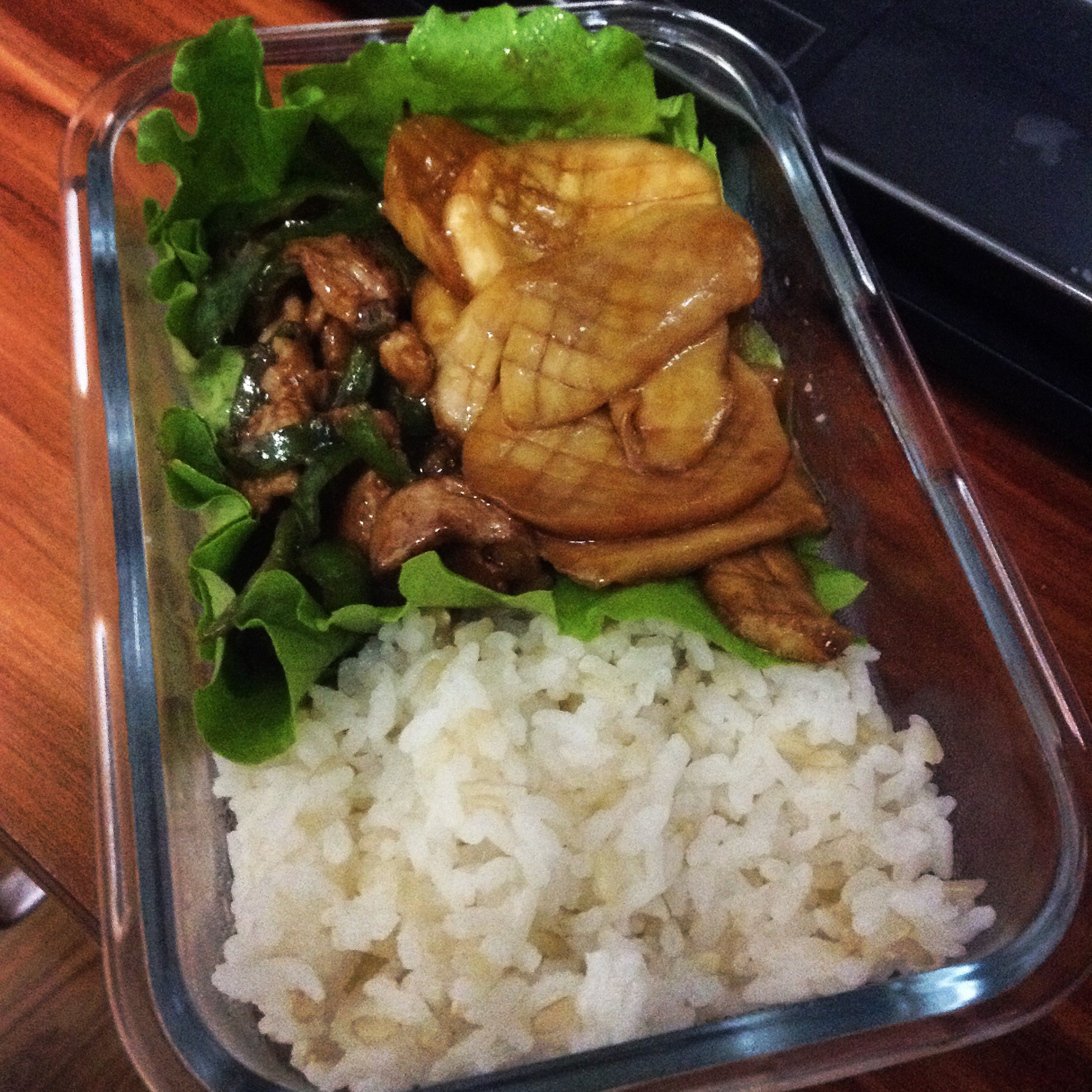 我也开始了带饭生活了~明天的中饭:糙米饭+酱汁杏鲍菇+青椒肉...