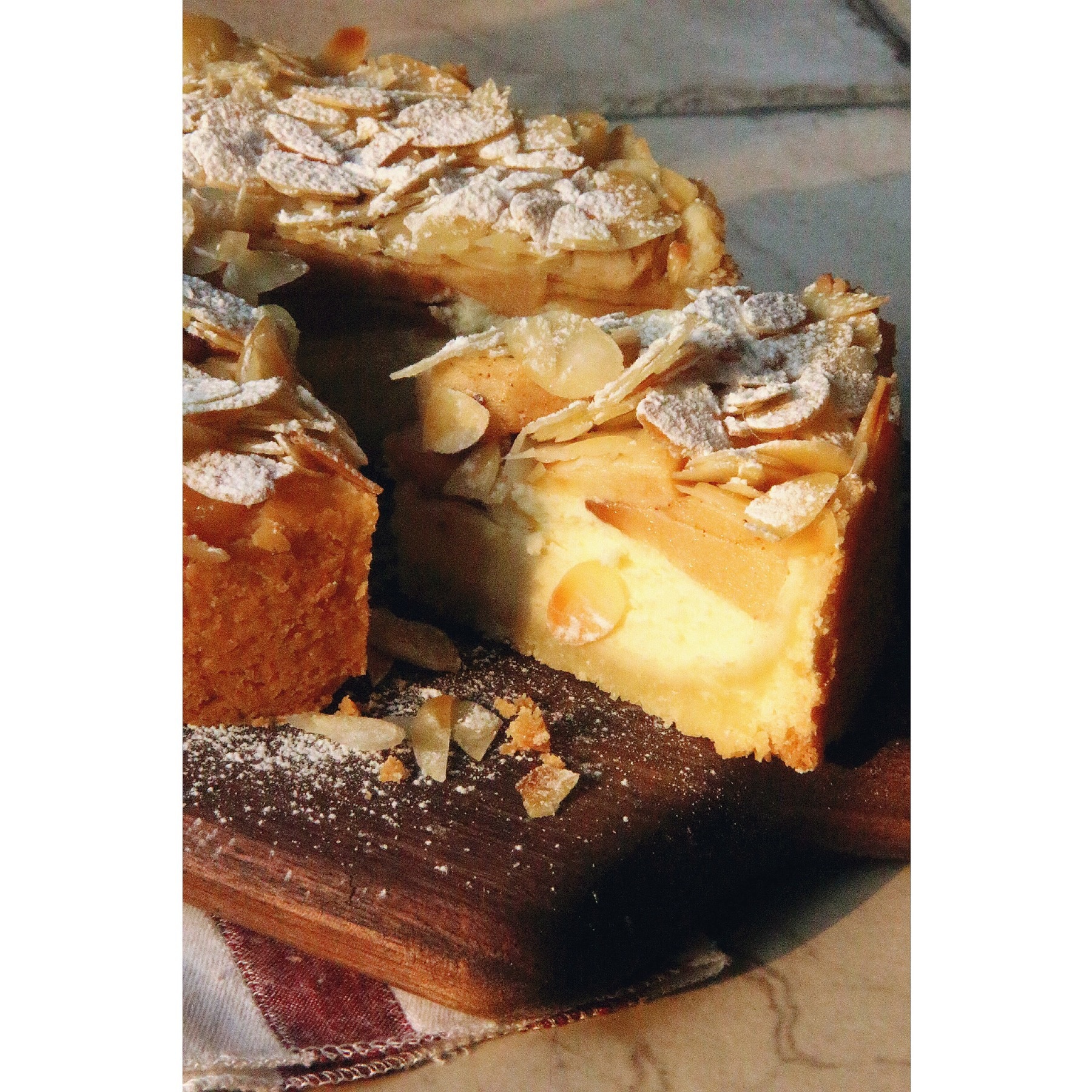噜啦啦~ 切开之后! 层次丰富看的心里暖暖的~ 杏仁片烤过之后真的很香!