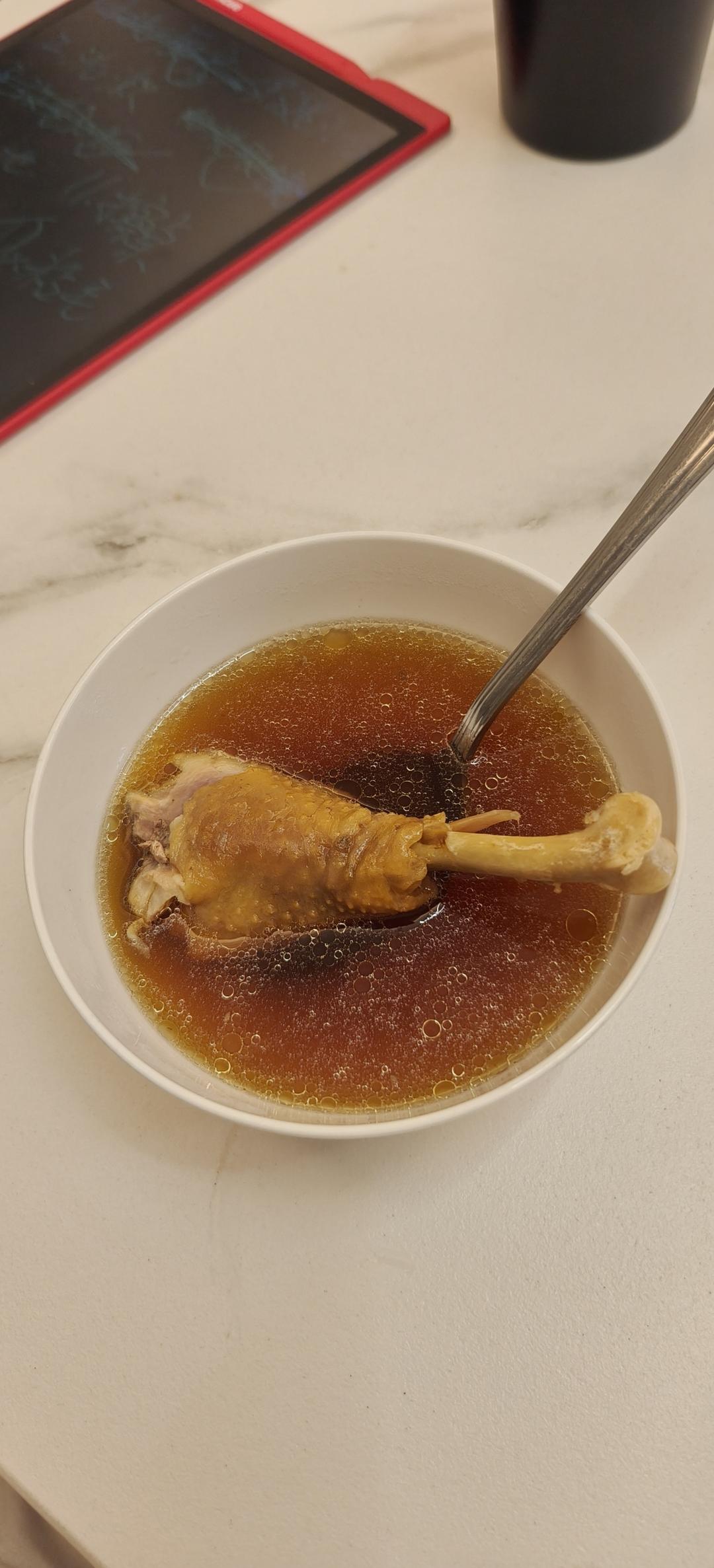 超鲜鸡汤,上回的老母鸡还剩半只冻在冰箱里,今天拿出来和菌菇姜片放高压锅炖了45分钟,鸡肉软而不烂,鸡汤鲜甜又有姜的香味,...
