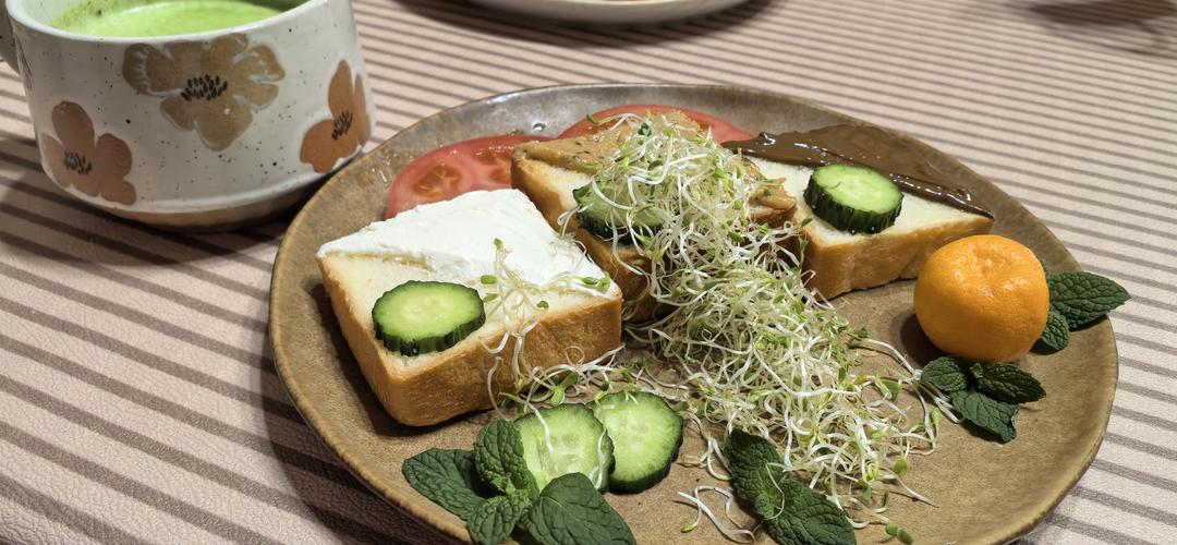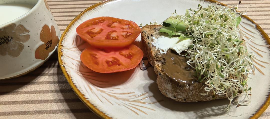 闺蜜投喂的鲁邦种酸面包和苜蓿芽,健康一餐。