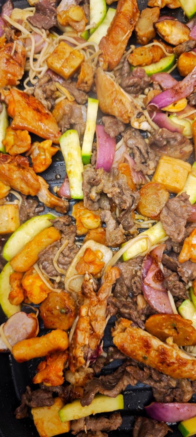 过瘾。中午吃剩的烤肉直接一盘炒了,这么炒还挺好吃的,不干不焦,素菜吸收了肉菜的油脂和调料,肉菜吸收了素菜的水分,连年糕也...