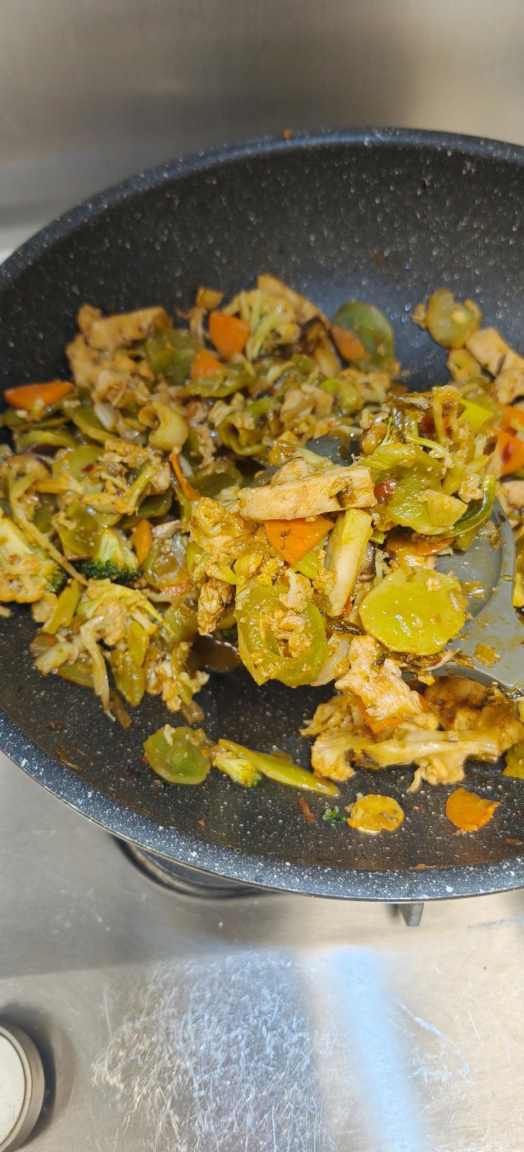 明天早饭:酸菜鸡肉炒杂蔬。花菜干,莴笋干,新鲜香菇胡萝卜西蓝花葱姜,香煎鸡胸肉切条,配上云南酸菜,郫县豆瓣,再加一点点泰...