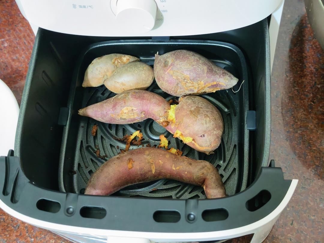 #空气炸锅版# 厨房小白,第一次用空气炸锅烤冰糖白心蜜薯,很香,一下子吃完了两个,现在接着烤第二锅