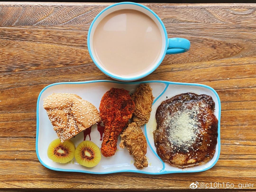一人食:抹茶黄油奶酥吐司&红心奇异果圣女果&K记炸鸡PK...