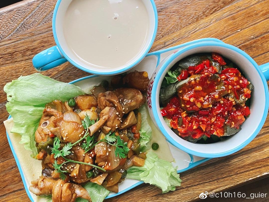 一人食: 黄焖鸡&泡椒包浆黑豆腐&五粮软煎饼&茉...