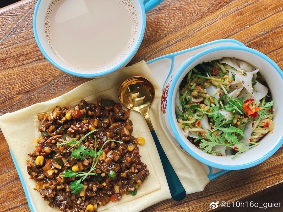 一人食:肉臊卷煎饼&凉皮&茉香奶绿
