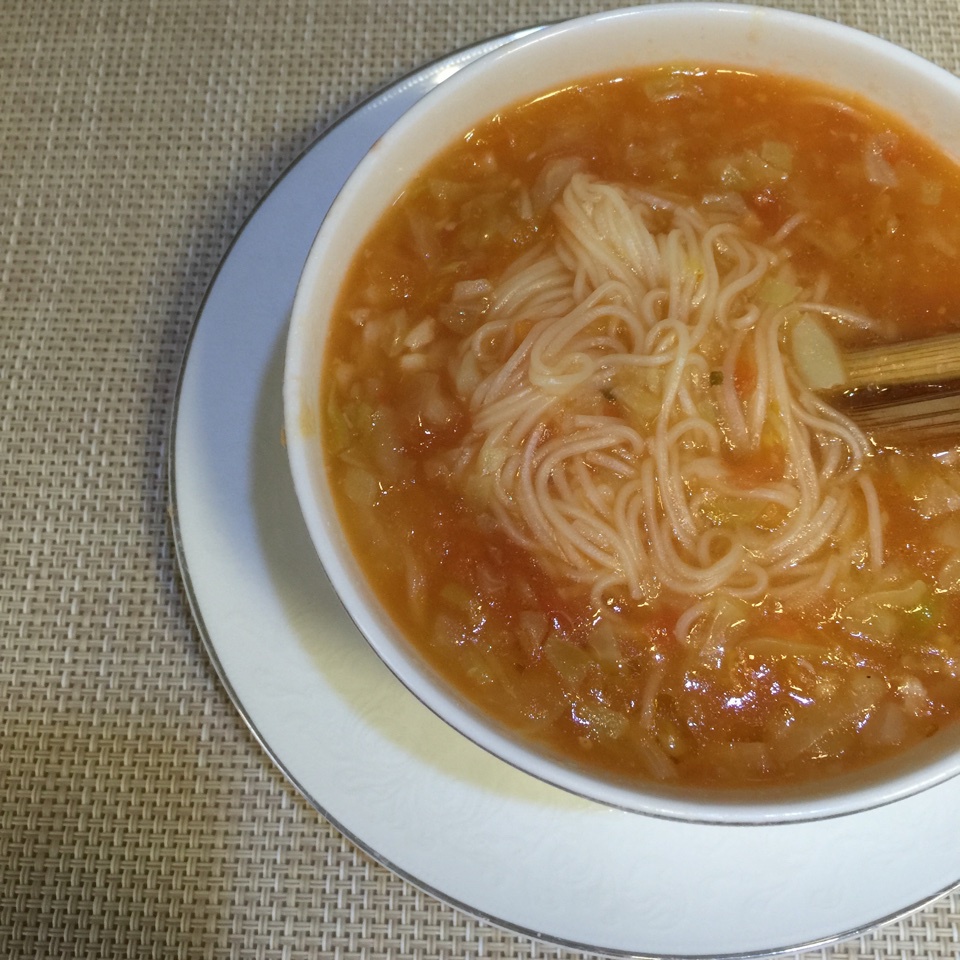 0222儿子早餐:西红柿洋白菜面卧鸡蛋~