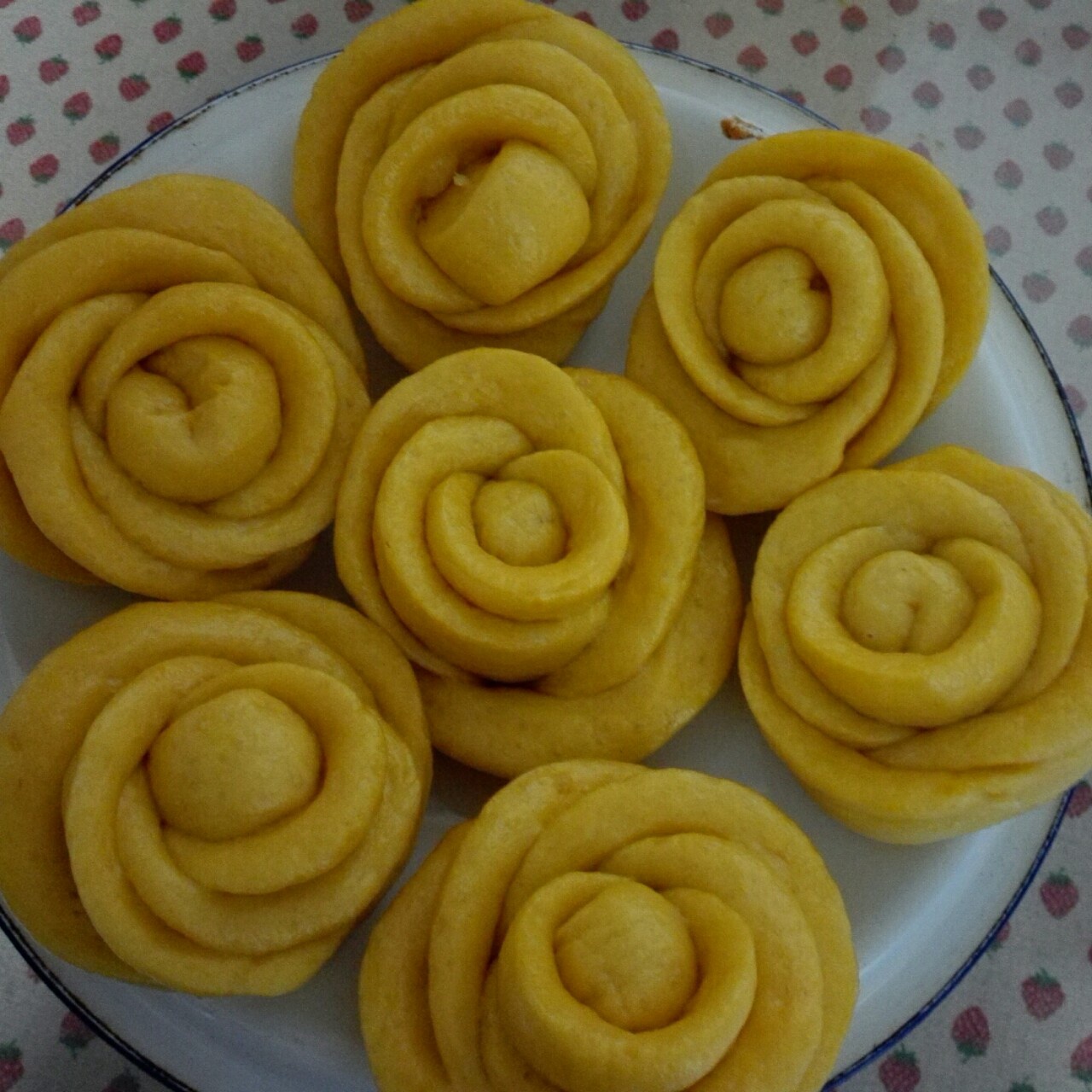 刚刚出笼的玫瑰花馒头。