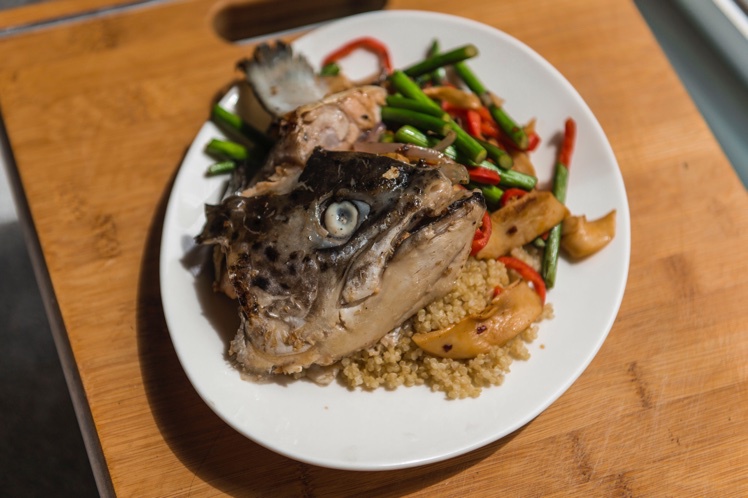照烧鱼头拌藜麦。