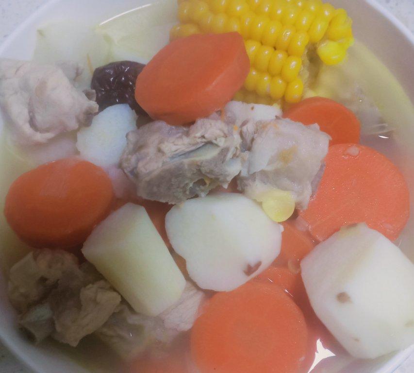 ★这次买的玉米很不好切,切的时候会有水出来,很脆,甚至不用煮就可以吃,所以就没放排骨汤里,而是直接...