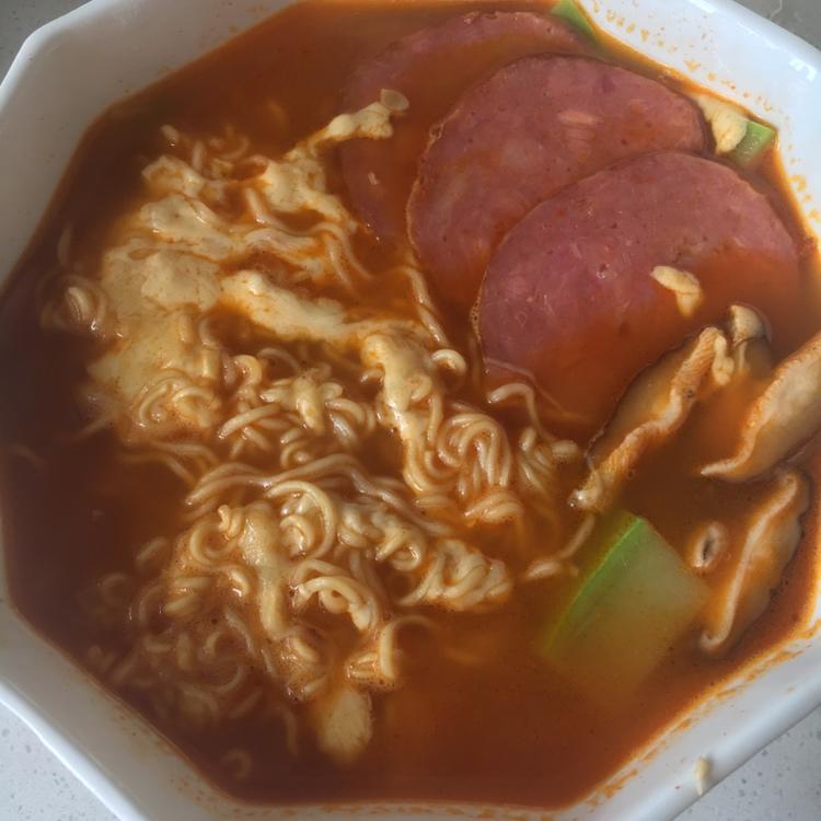 寒假第八天😁 自制韩式酱料煮的芝士火锅面,非常好吃了😋
