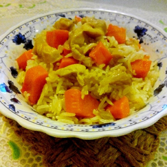 # 洋葱红罗卜油焖鸡饭 #