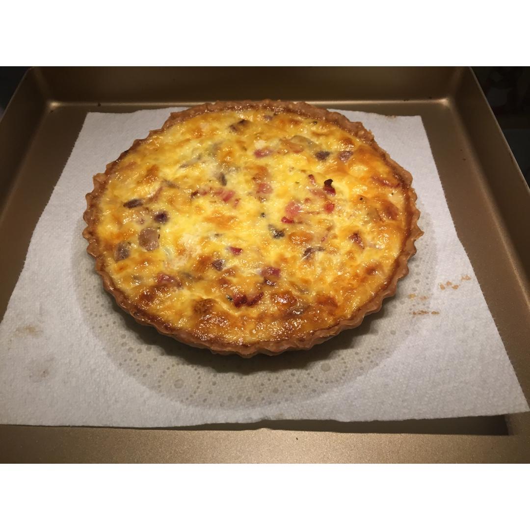 买的成品shortcrust pastry,但是不酥。。。blind bake用的红豆。。。洋葱很甜,感觉放太多了太甜了...