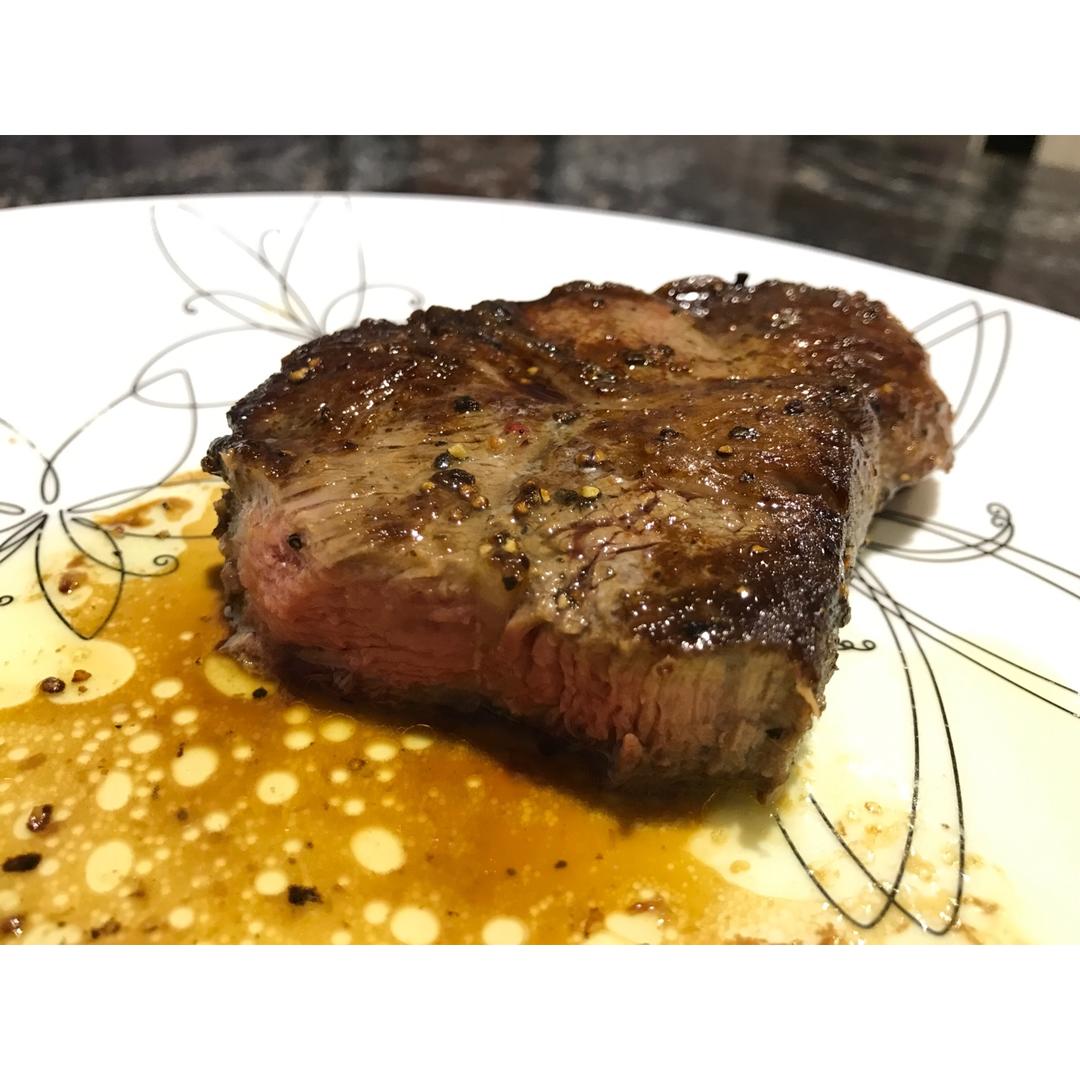 一块wagyu,粉盐+黑胡椒腌制了15分钟。平底锅很烫,倒油烧很热,先把侧面有油脂的地方略煎,然后一面一分钟,翻面,再一...