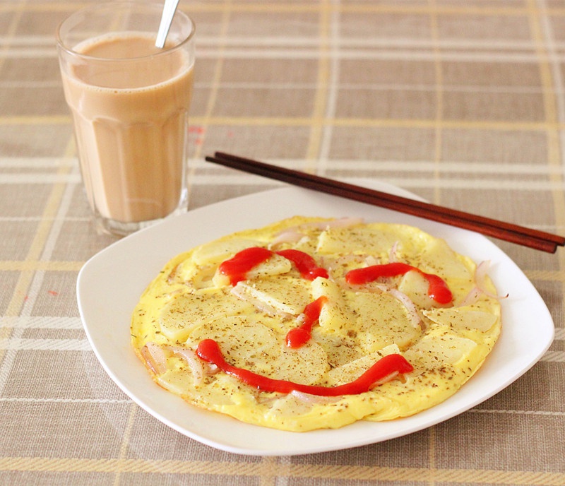 土豆煎蛋饼配奶茶,一个人的早午餐,来点好心情吧^_^