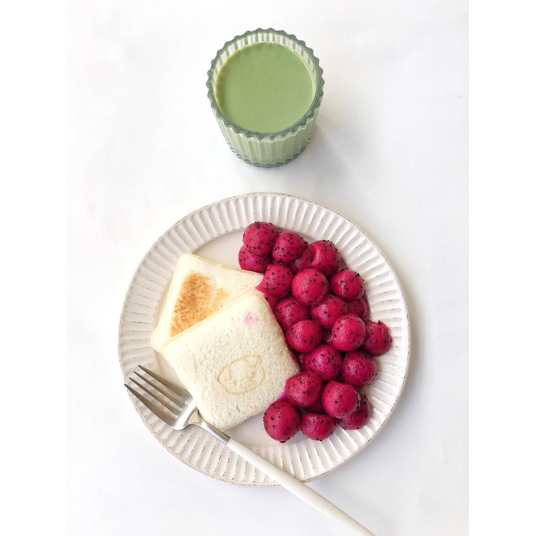 猪头🐷吐司三明治+抹茶拿铁+火龙果