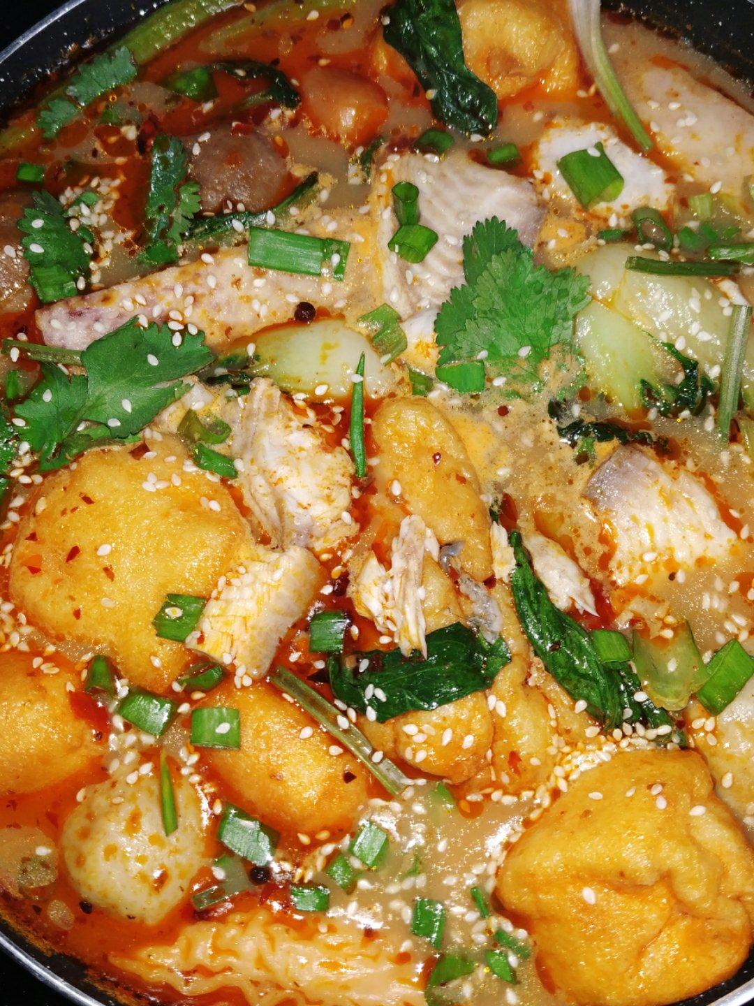 照着作者的方法做了两次,本来不怎么喜欢吃鱼的感觉都有点停不下来了,昨天在炒料的时候试着加了点火锅底料在里面,依然好吃(「...