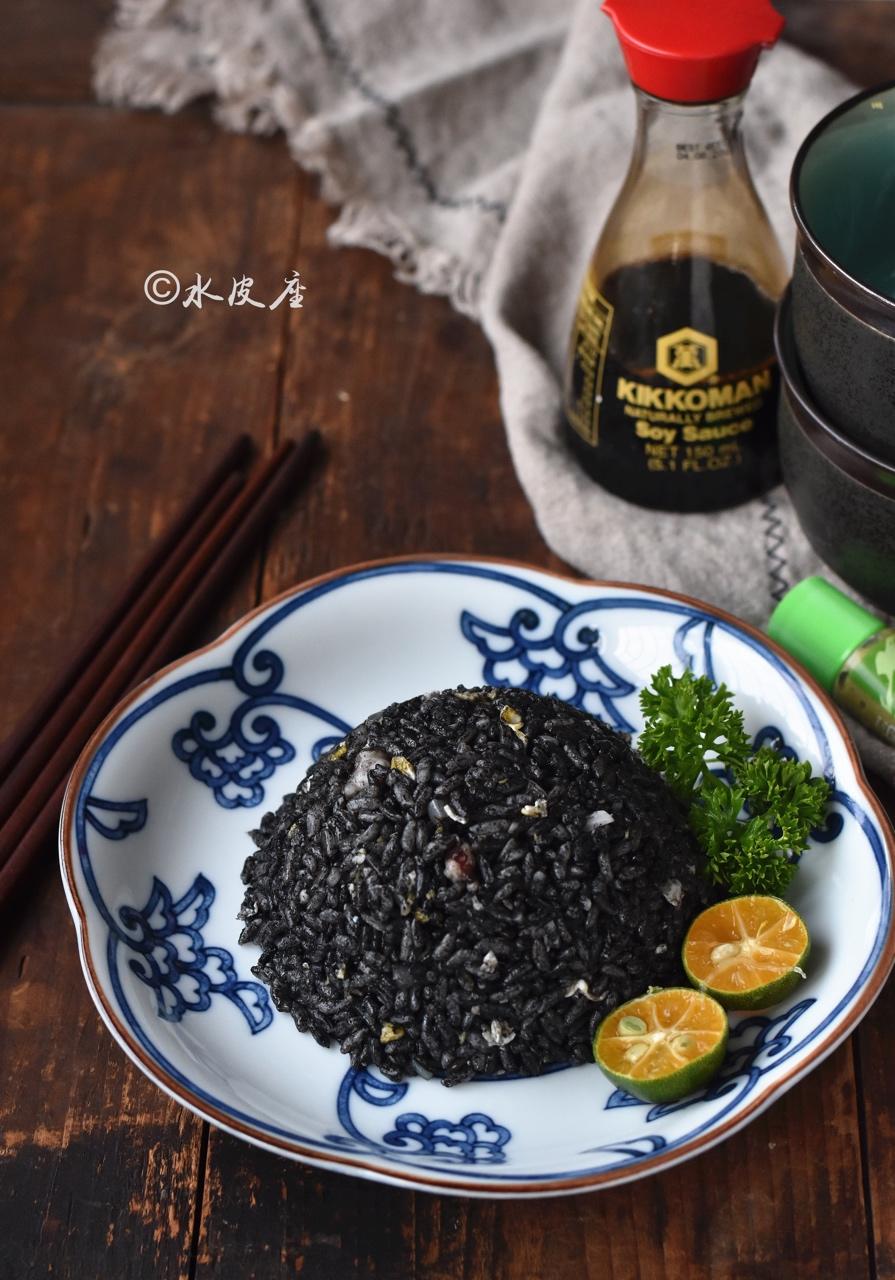 日式墨鱼汁海鲜炒饭。一个暑假海鲜吃太多,一家人都检查出尿酸到了临界值,拿到体检报告的那一刻心情是复杂的🌚 #晚餐•201...