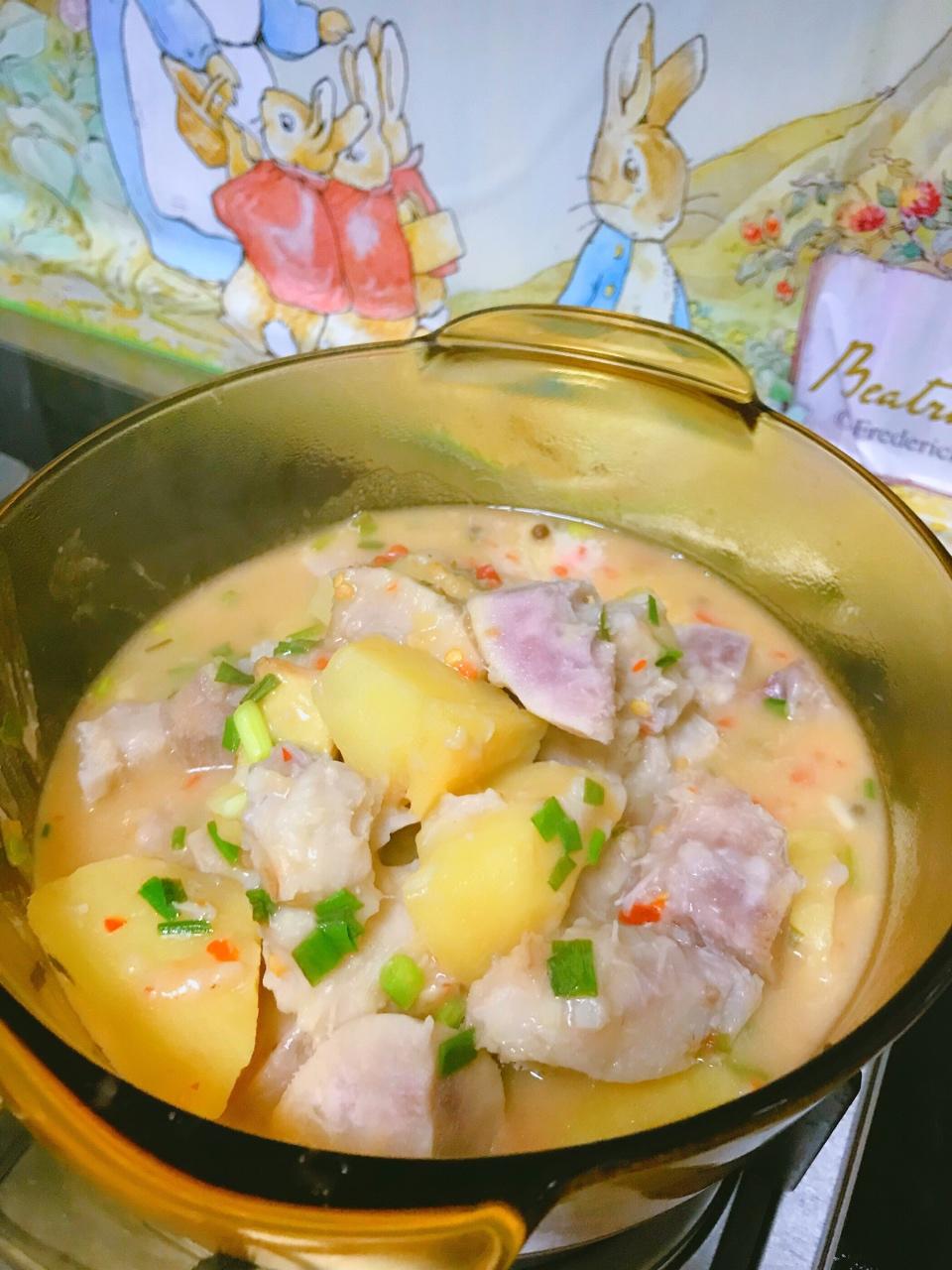 扶贫的香槟芋头+扶贫红皮土豆结合葱香味的。特别好吃。洋葱炒白菜。😁😁😁
