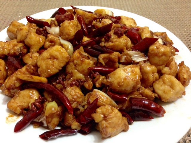 鸡胸切丁,加盐、蛋液、玉米淀粉腌制后划油捞出,炒锅烧热爆香姜、麻椒、干辣椒、葱然后倒入鸡胸加入生抽,少许盐,糖调味即可 ...