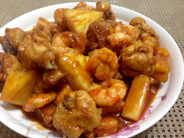 来盘酸甜口味的菜,鸡腿,虾仁,菠萝好好吃