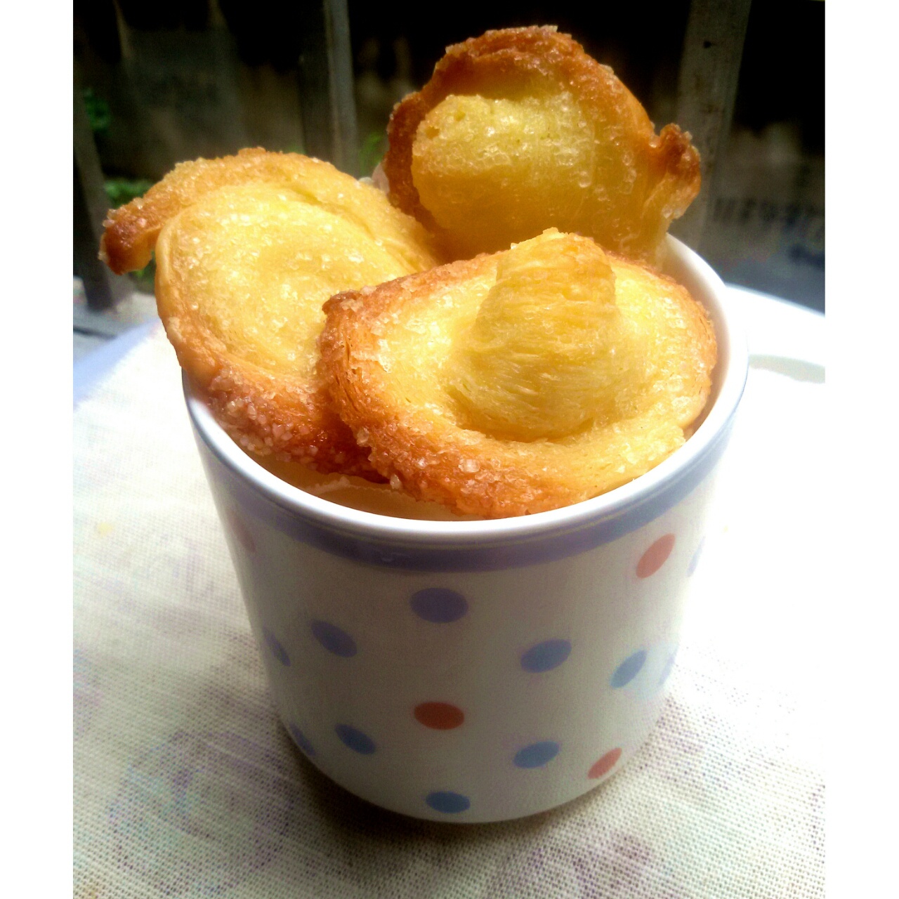 蛋挞皮撒上白糖就进烤箱啦~~
