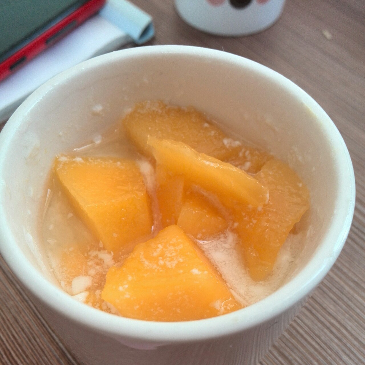 2蛋,1/3 杯杏仁奶,1/3杯gluten-free面粉,一点儿香草精,一点儿肉桂粉...