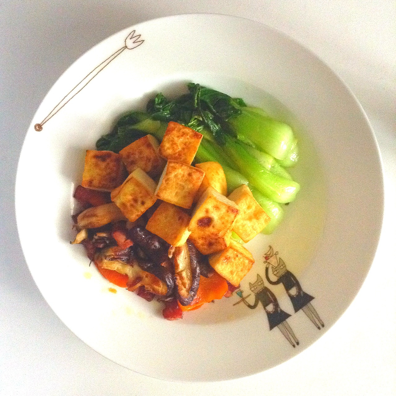 煎豆腐和炒青菜