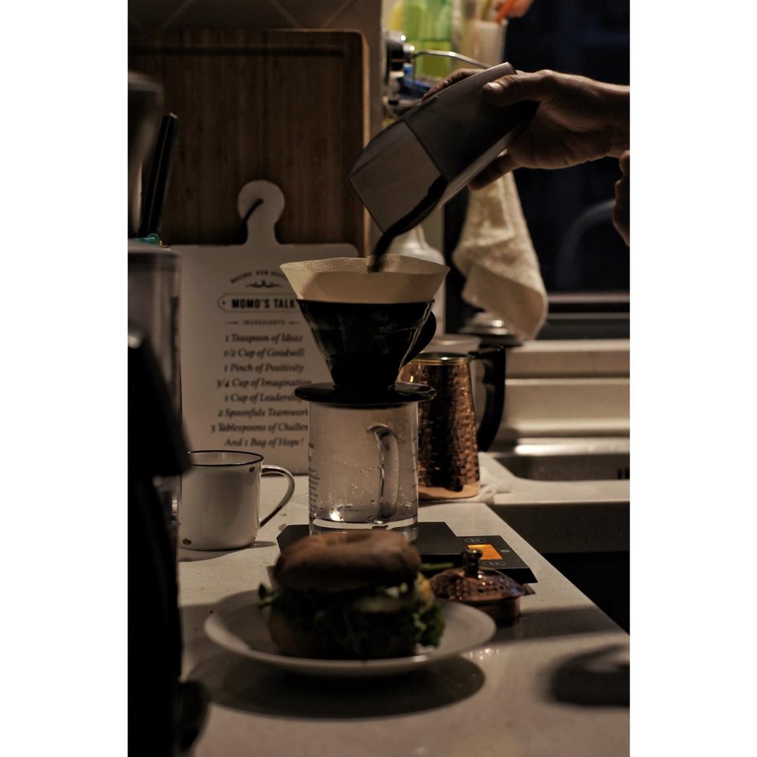 5点起床打了面团,喂了鲁邦宝宝,掐着空挡时间用洋葱贝果做了鸡蛋蔬菜三明治,lilydrip萃出来的威士忌酒桶发酵洪都拉斯...