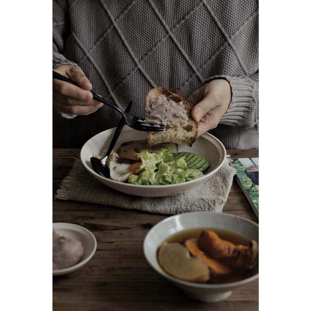 连续两天降温10几度,今终于有点冬天的样子了。还好炖了黑糖雪梨南瓜汤,蒸了一小块芋泥,抹面包吃。芋泥做法:福鼎槟榔芋蒸熟...