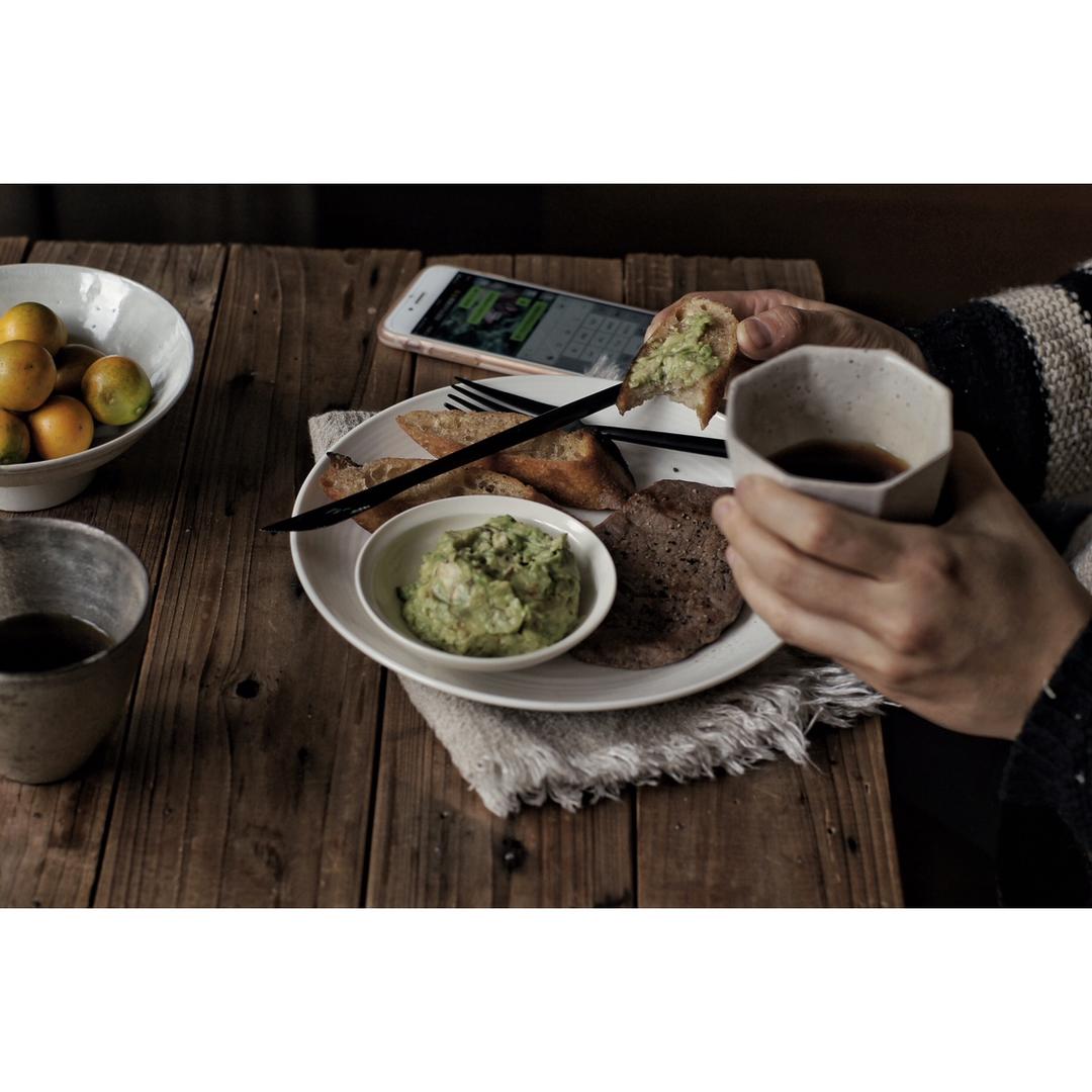 今天的早餐是椰子油煎法棍,牛油果泥和牛排,因为周末一直在拉肚子,牛排煎的熟透而不是平常的5分熟,真难吃[捂脸]早安&am...