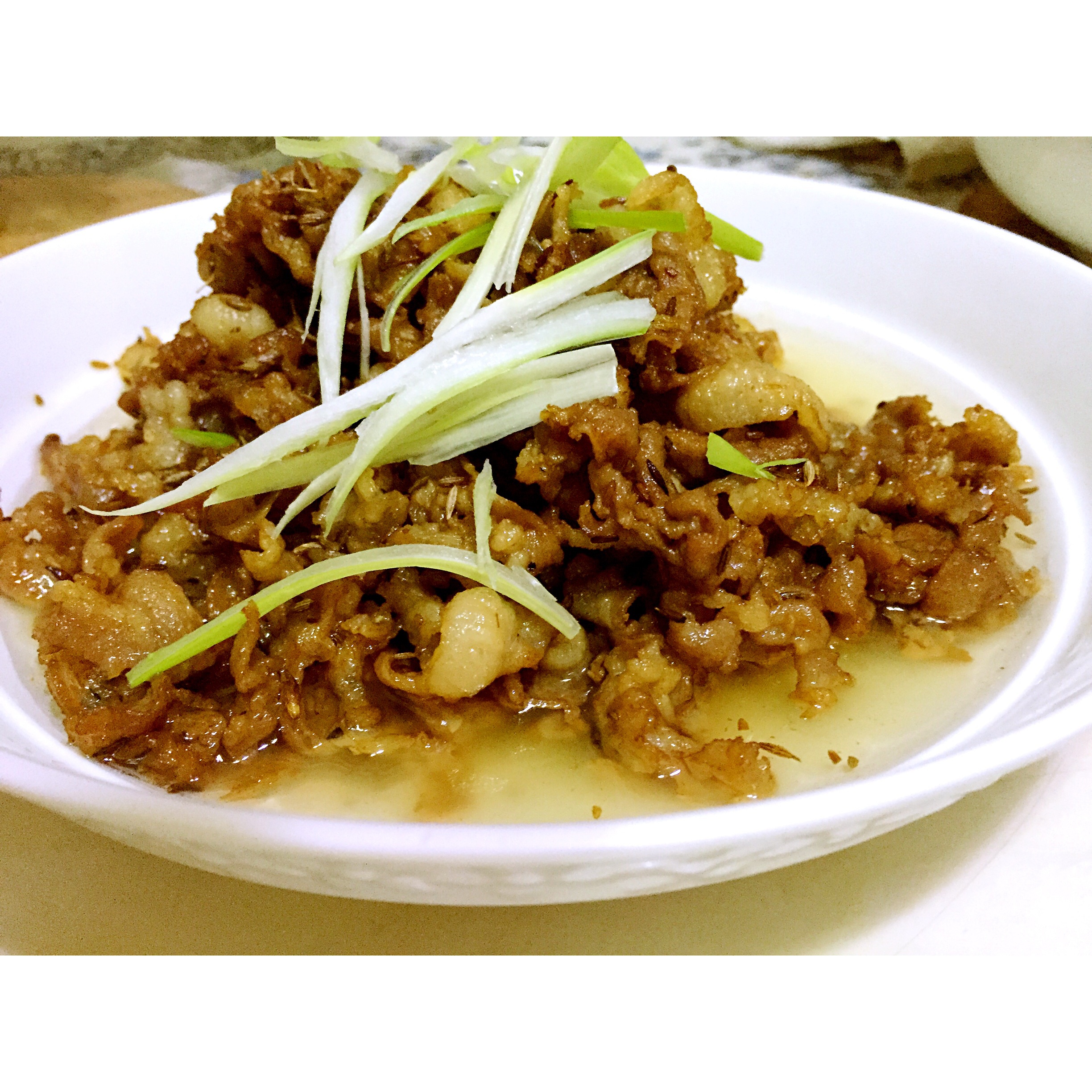 孜然羊肉,羊肉煸的油好多,用来炒饭真是香,有吃手抓饭的感觉