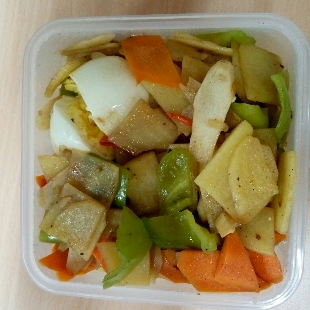 2160713:清炒土豆胡萝卜洋葱青椒杂蔬,鸡蛋,米饭,夏天就要吃清淡!我该...